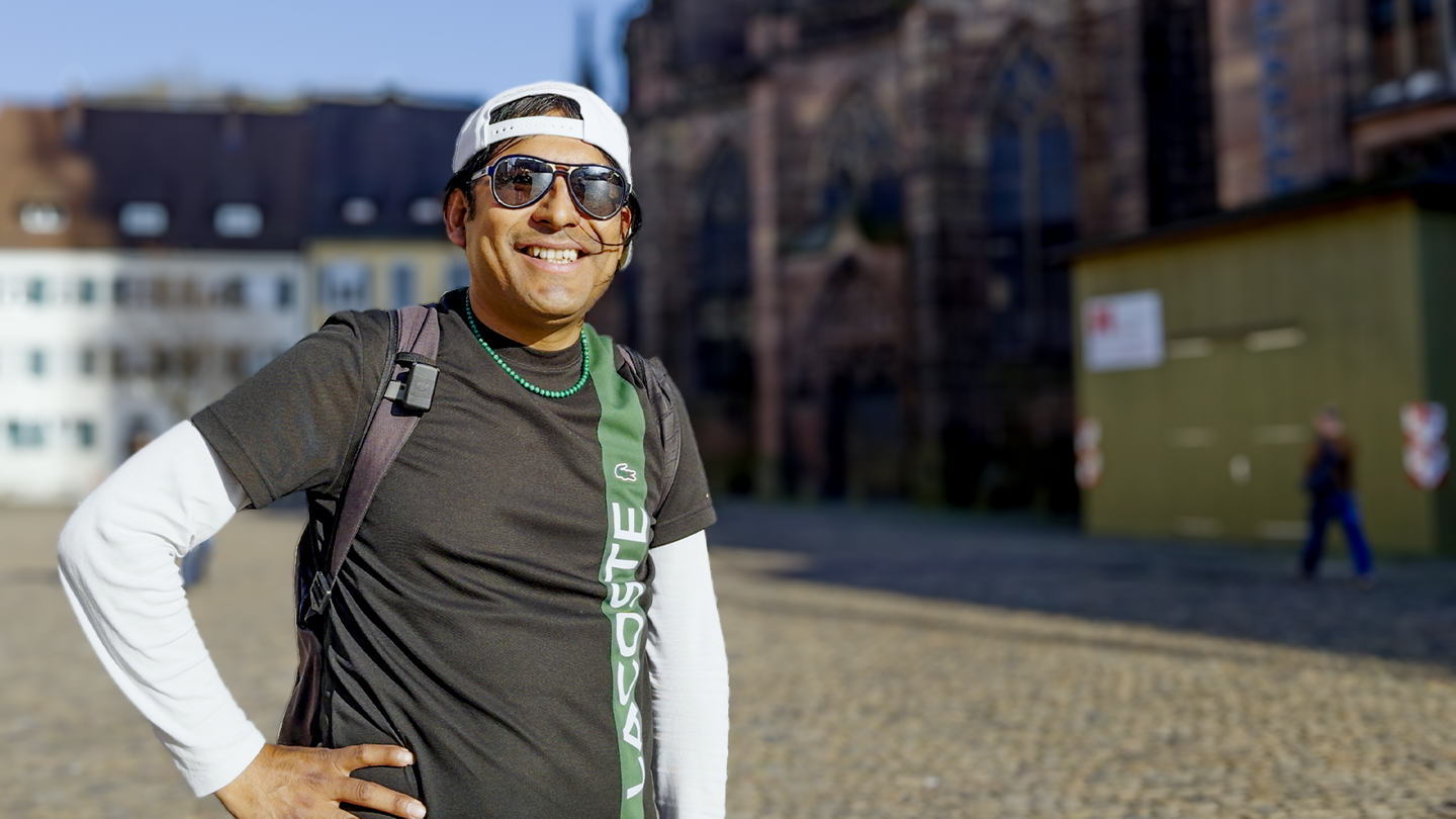 In der Freiburger Innenstadt sprechen wir einen Mann mit Sonnenbrille an: Samuel. Und er hat einiges zu erzählen. Samuel stammt ursprünglich aus den Anden, „von ganz hoch oben”, wie er sagt. Die Anden sind eine Gebirgskette in Peru.