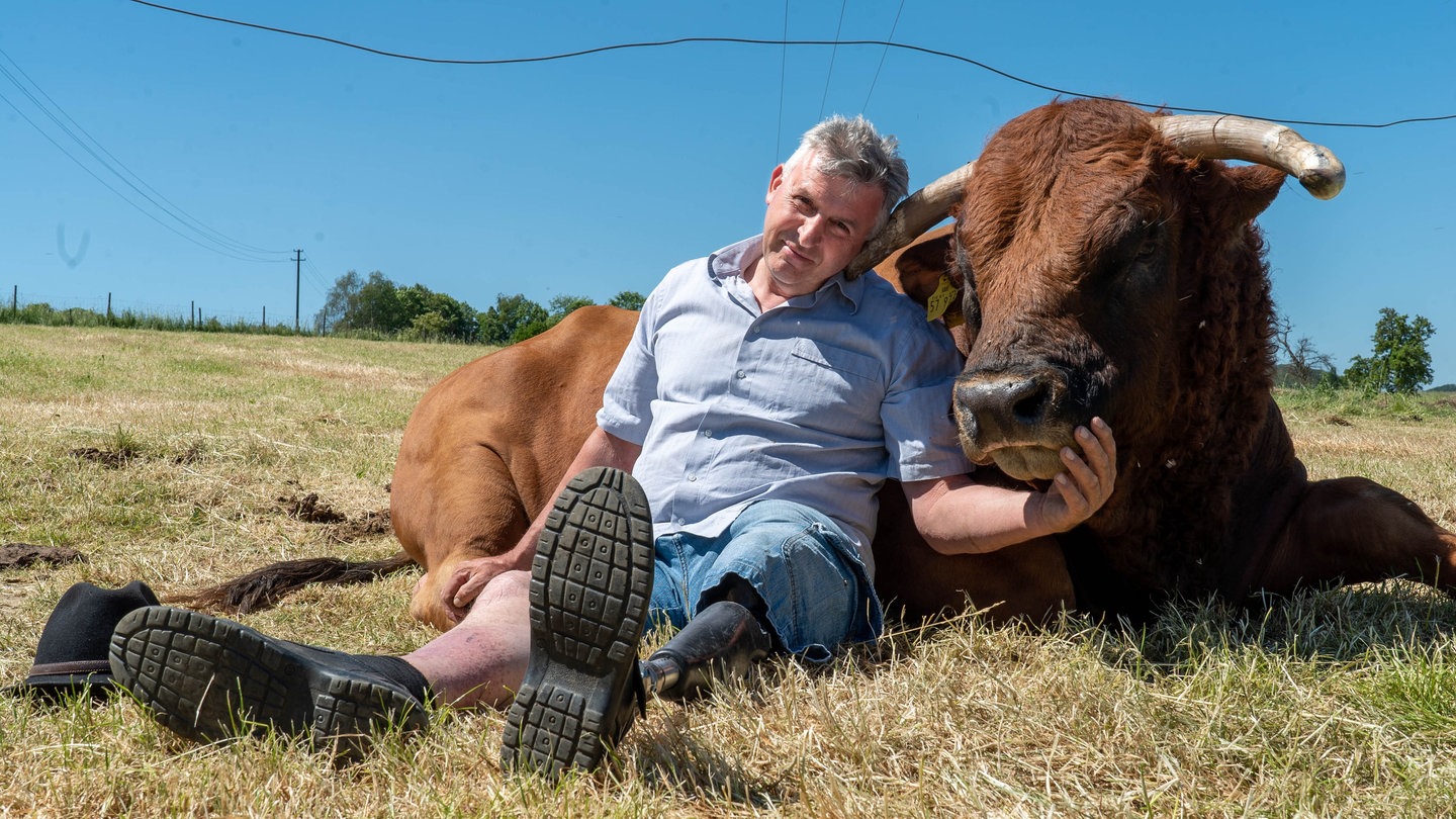 Vier Monate verbringt er im Krankenhaus, doch ans Aufgeben denkt er keine Sekunde: „Mein absoluter Wille war, wieder gesund zu werden, wieder mobil zu werden.“ Dass Hans-Willi unbedingt auf seinen Hof zurückkehren möchte, liegt auch an seinen handzahmen Rindern Adam und Eva. Beide wurden 2009 auf dem Hof geboren. „Irgendwann sind sie mir nachgelaufen wie eine Katze“, erinnert sich Hans-Willi. Bulle Adam lässt den Landwirt sogar auf sich reiten.