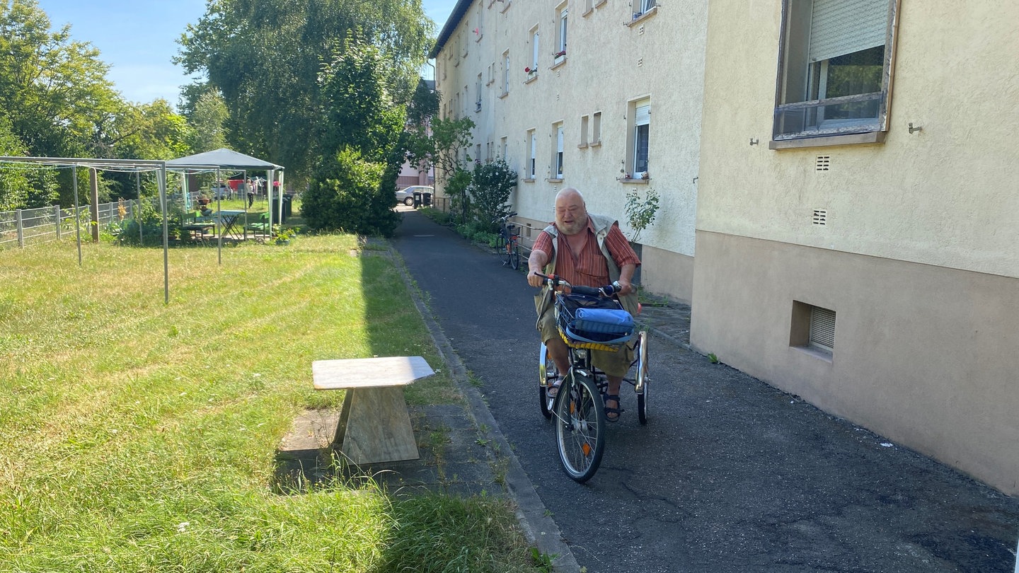 Für Otto aus Landau-Queichheim bedeutet sein Dreirad raus aus der Bude zu kommen, Kontakte mit anderen zu haben und vor allem auch eine regelmäßige warme Mahlzeit – kurz: einfach Leben. Der 66-Jährige muss zurzeit mit etwas mehr als 600 Euro Rente im Monat über die Runden kommen und ist deshalb auf ein warmes Mittagessen bei der Terrine angewiesen. Otto hatte viele Jahre lang als gelernter Metzger in Landau gearbeitet und sich dabei Wirbelsäule, Hüfte und Gelenke ruiniert. Ohne Dreirad war er gezwungen, die sechs Kilometer zur Terrine in der Stadtmitte zu Fuß zu laufen.