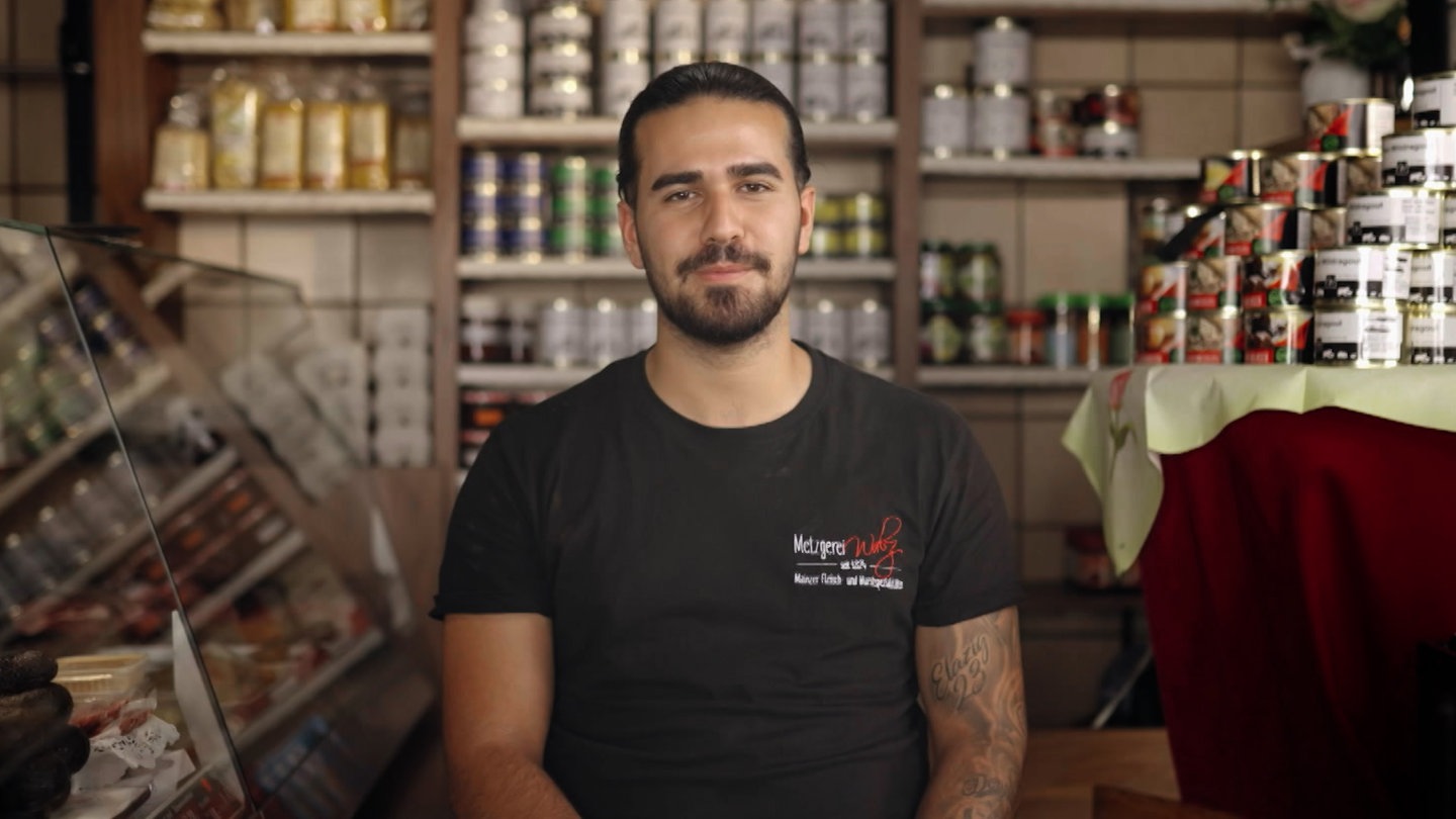 Mustafa, auch Musti genannt, macht eine Ausbildung zum Metzger. „Ich kam in die Berufsausbildung mit null Erfahrung. Ich wusste nichts, ich war vorher nie in einer Metzgerei, weil den Einkauf immer meine Eltern gemacht haben. Als ich angefangen habe, habe ich dann gesehen, wie viele Produkte es gibt und was der Beruf alles mit sich bringt.“ Inzwischen ist Musti im dritten Lehrjahr in einer Metzgerei in Mainz-Mombach. Sein Chef, Peter Walz, ist sehr zufrieden mit ihm: „Mustafa ist ein Gewinn für unsere Firma. Es gibt zu wenig Nachwuchs und wir brauchen das Handwerk. Es muss jemand die Arbeit bei uns machen.“