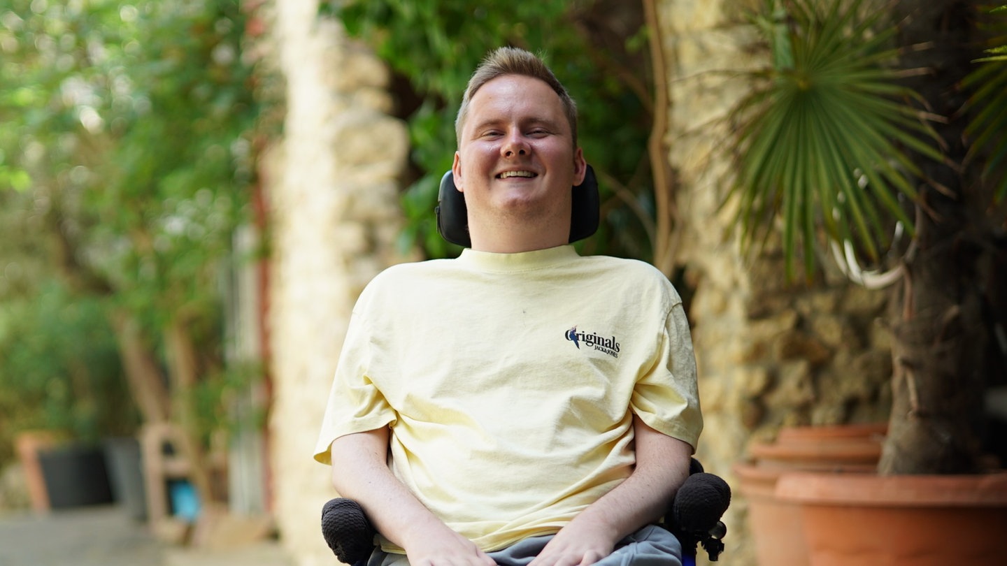 24 Stunden am Tag ist Robin auf Hilfe angewiesen. Er hat ein siebenköpfiges Pflegeteam. Damit sein Körper nicht versteift, ist regelmäßige Physio- und Ergotherapie wichtig. Aber auch die Technik bringt ihm Freiheiten zurück: „Zum Beispiel mein Hilfsmittel, mit dem ich meinen PC und mein iPad steuern kann.“ Das ermöglicht ihm auch, seiner großen Leidenschaft nachzugehen: Er schneidet Videos, die er dann auf Social Media veröffentlicht. Damit will er über seine Einschränkung aufklären, anderen Betroffenen Mut machen und nichts Geringeres als: „die Welt retten“.