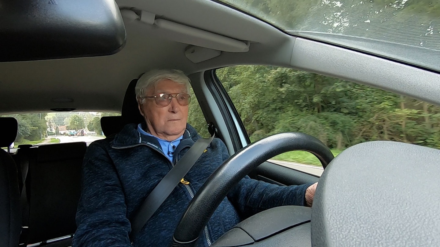 Fast 70 Jahre fährt Rudolf schon Auto und er hat noch nie einen Punkt in Flensburg bekommen, erzählt er stolz. Seinen Führerschein hat er 1954 gemacht – damals gab es keine Servolenkung, Airbags oder Sicherheitsgurte. Ein Leben ohne Auto, das kann er sich nicht mehr vorstellen. Seit er Probleme beim Laufen hat, ist das Auto für ihn unentbehrlich geworden, um mobil zu bleiben. Deshalb bangt Rudolf jedes Jahr um das Okay der Fahrschullehrerin. „Wenn die Fahrlehrerin sagt, es geht noch ein Jahr, bin ich froh, dass es so ist. Für mich ist das beruhigend.“