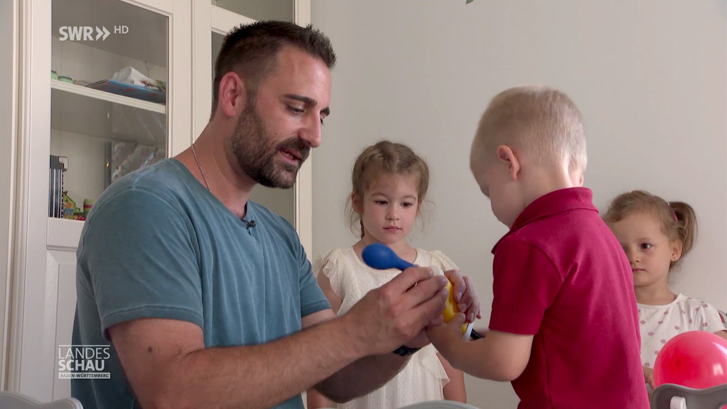 Der dreifache Vater Saky hat 2019 seinen Job als Kfz-Mechatroniker an den Nagel gehängt und arbeitet heute als Tagesvater. Er ist auf Kinder bis drei Jahre spezialisiert und betreut täglich 5 Kinder: „Ich mache das, was jede Mama und jeder Papa jeden Tag mit seinen eigenen Kindern macht. Nur eben mit einem anderen Bewusstsein: Ich mache die Dinge, die man sonst intuitiv als Elternteil macht, ganz gezielt.” Dazu kommt: „Als Kindertagespflege hat man auch einen Erziehungs- und Bildungsauftrag.”