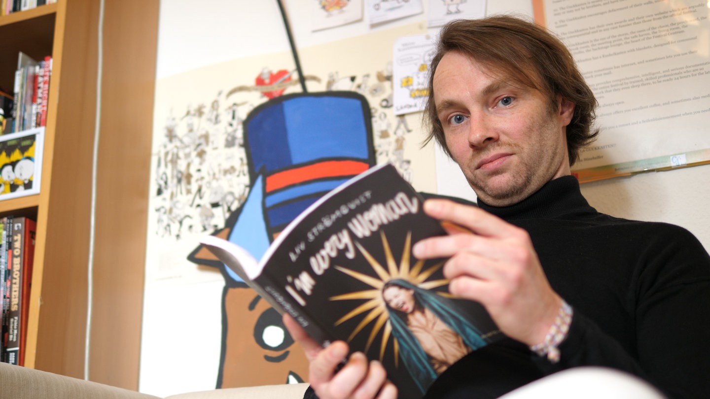 „Ich erinnere mich immer noch an die langen Autofahrten als Kind. Zur Ruhigstellung“ – er zeichnet Anführungszeichen in die Luft – „haben mein Bruder und ich Comics bekommen.
