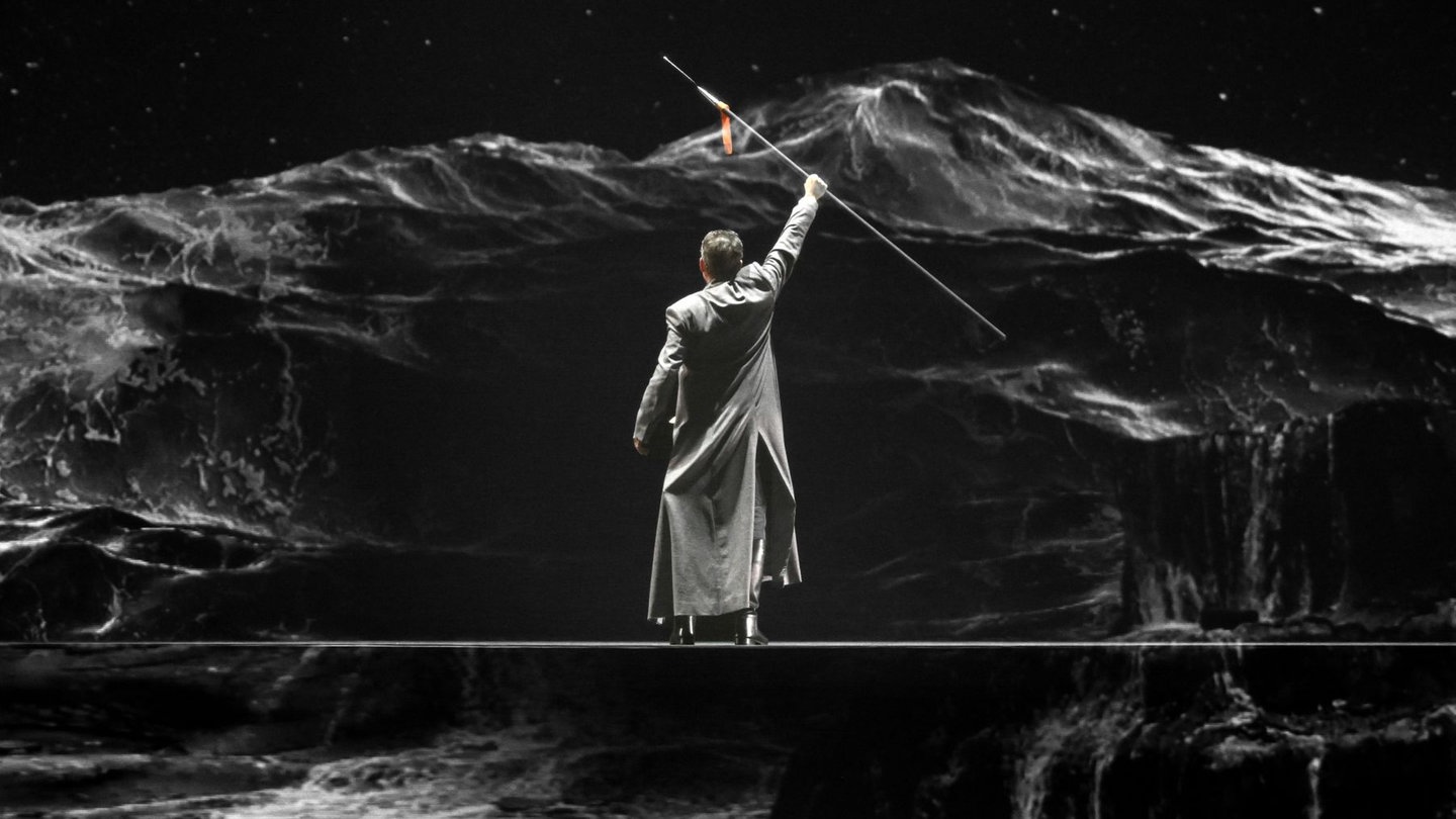 Wenn der Vorhang sich hebt, befinden wir uns in der Welt des scheinperspektivischen Kulissenzaubers. Wie Bühnenmalerei wird sie auf hintereinander gelagerte Gazeschleier projiziert.