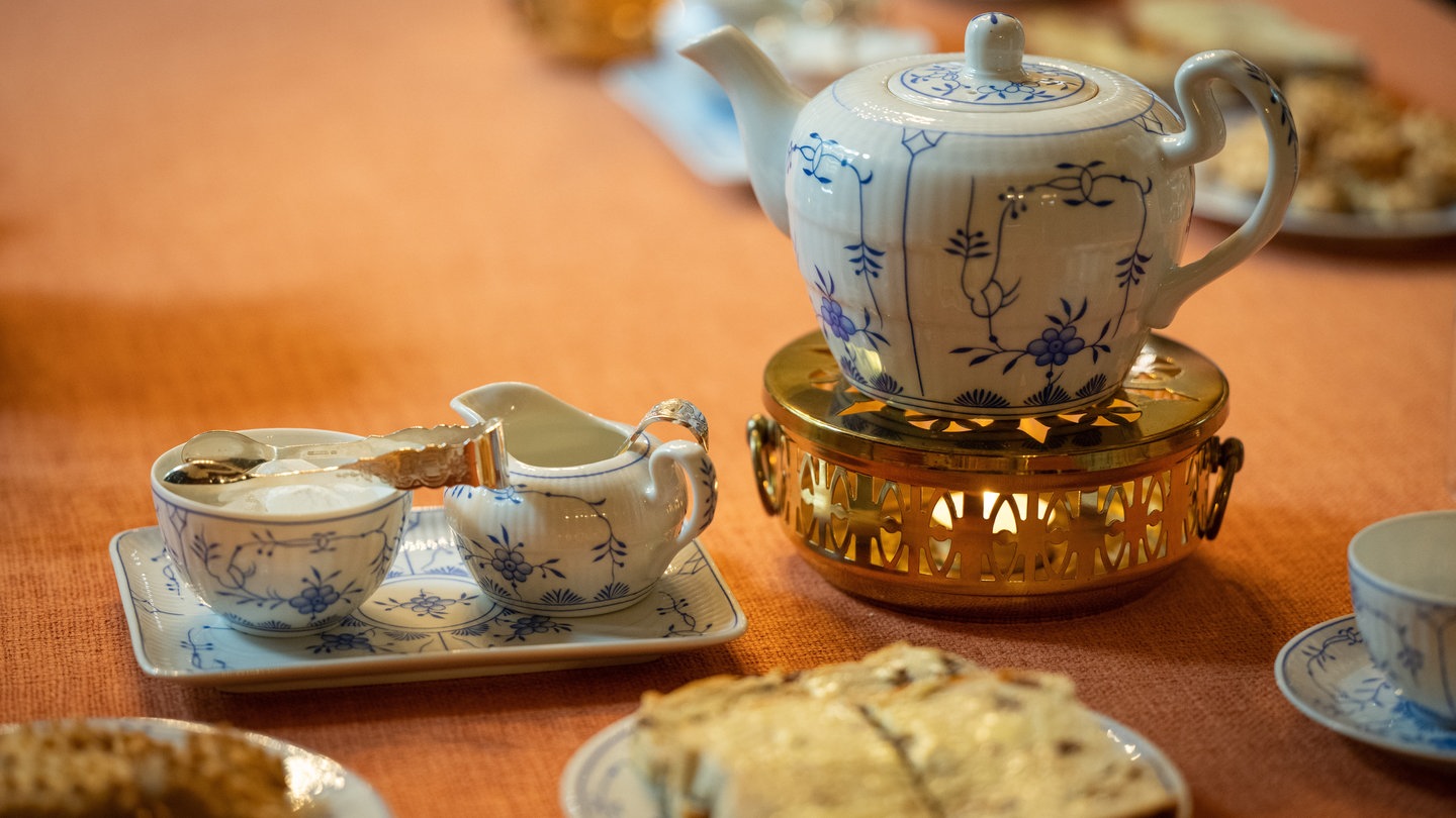 Dass das ein besonderes Ritual ist, zeigt sich schon bei der Zubereitung. Einfach nur kochendes Wasser auf einen Teebeutel kippen ist da nicht. Zunächst kommen lose Teeblätter in eine Kanne: Die klassische Osfriesentee-Mischung enthält nordindischem Assam, Ceylon und Darjeeling. Dann beginnt das Aufgießen.
