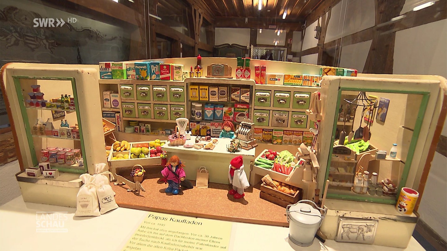 Kleine Gläser mit Essiggurken, Dosen mit Oliven, Waschmittelpackungen und im selben Maßstab noch Kuchen, Salami und sogar eine Leberkässemmel. Andrea Schäberle aus Ehingen im Alb-Donau-Kreis sammelt seit über 20 Jahren Puppenkaufläden. Der älteste ist von 1945. Immer im Winter holt sie ihre Sammlung von knapp 30 Miniatur Kaufläden vom Dachboden. Jetzt stehen diese Puppenstuben sogar noch bis Anfang Februar im Ehinger Heimatmuseum. Darauf ist sie besonders stolz.