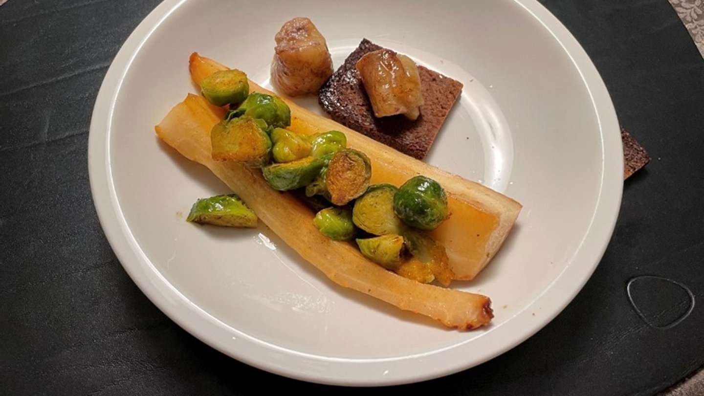 Rezept: Mangoldrippen, Rosenkohl und Pumpernickel