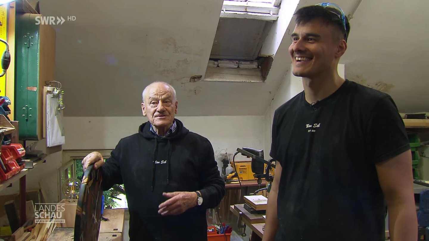 Man-Seb, das sin „Man-fred“ und „Seb-astian“, das sind Opa und Enkel. Die beiden Mannheimer haben eine gemeinsame Leidenschaft: In einer kleinen Hinterhofwerkstatt stellen sie Kunstwerke aus Holz her. Und da geht alles Hand in Hand.
