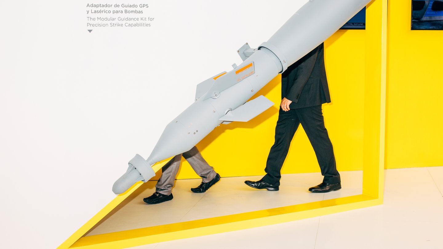Der Dokumentarfotograf Nikita Teryoshin hatte schon immer ein Auge fürs Groteske. Doch er ahnte nicht, auf welchen unerschöpflichen Schauplatz des Absurden er stoßen würde, als er vor knapp zehn Jahren begann, Militär- und Rüstungsmessen zu fotografieren.