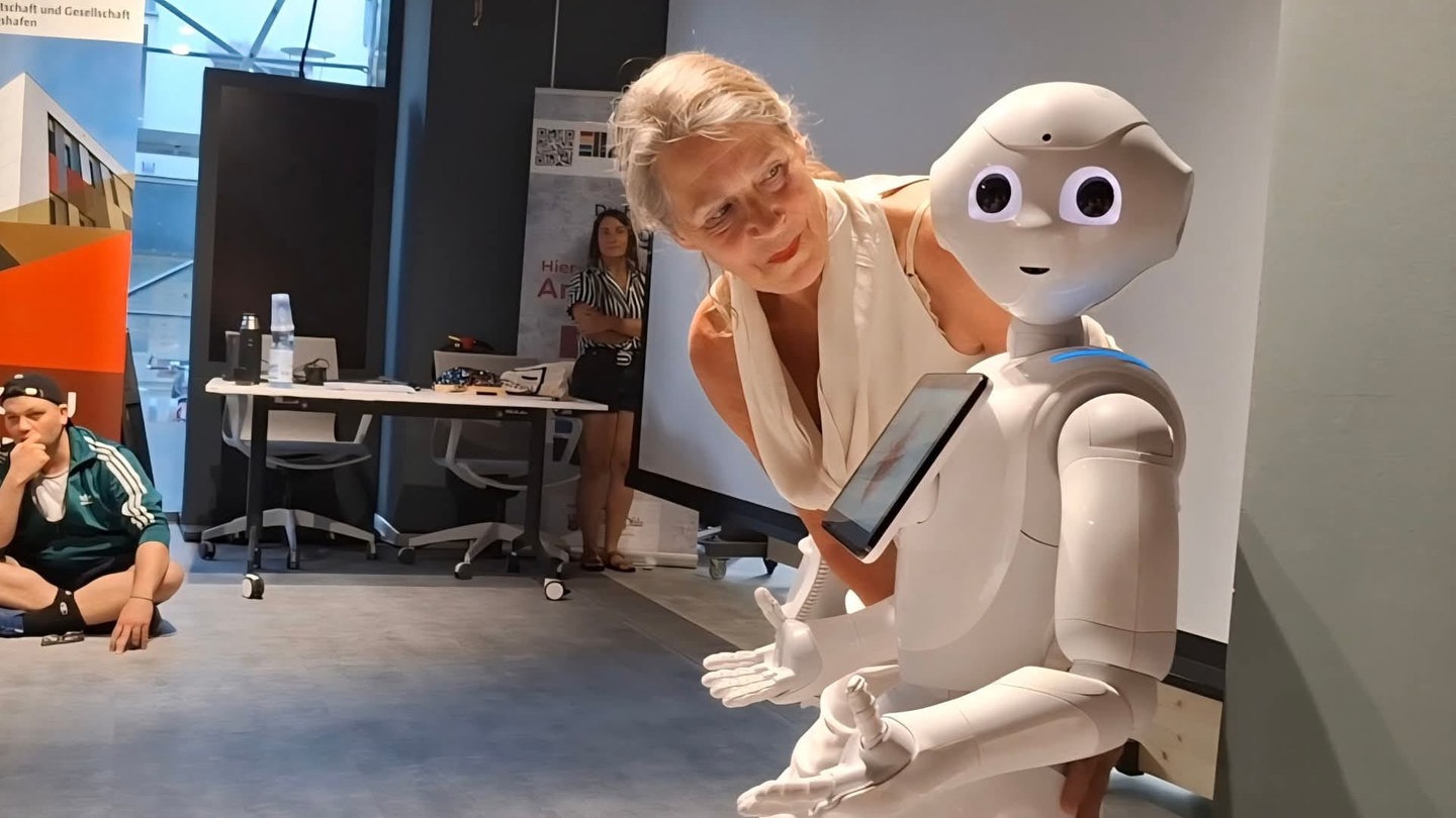 Im Rahmen der Ausstellung „Forever Young: Tardigrada“ in Kaiserslautern, die sich mit dem Älterwerden beschäftigt, sprach die Schauspielerin Hannelore Bähr mit dem Roboter Pepper. Es ging um Rilke, Roboter und Menschen im Film und um Gefühle.