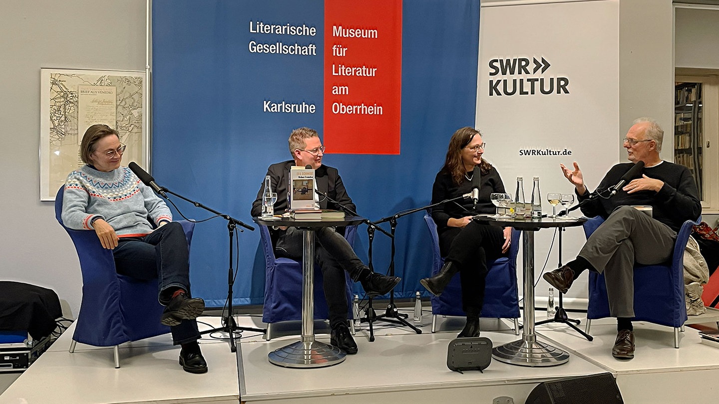 Auf dem Programm standen Nava Ebrahimis Roman „Und Federn überall“ (Luchterhand Literaturverlag), der Gedichtband „Portolan“ von Daniela Danz (Wallstein Verlag), Eva Schmidts Roman „Neben Fremden“ (Jung & Jung Verlag) und László Krasznahorkais Roman „Zsömle ist weg“ in der deutschen Fassung von Heike Flemming (S. Fischer Verlage).