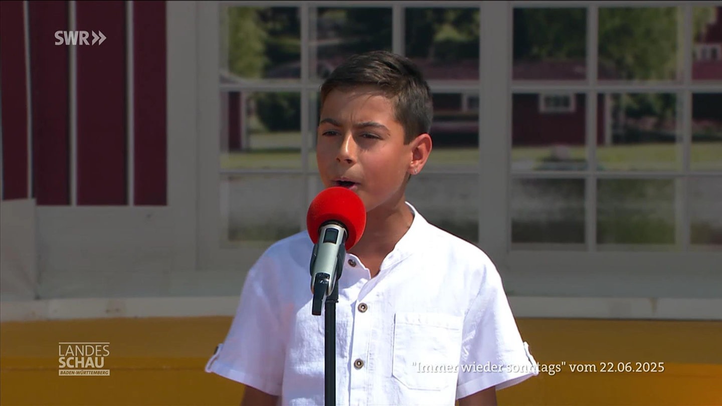 Der 10-jährige Dominik ist in seiner Heimat in Oberschwaben sowas wie eine Berühmtheit, denn kürzlich lief sein Auftritt bei Stefan Mross in der ARD Show „Immer wieder sonntags“. Da hat er „Völlig losgelöst“ gesungen.