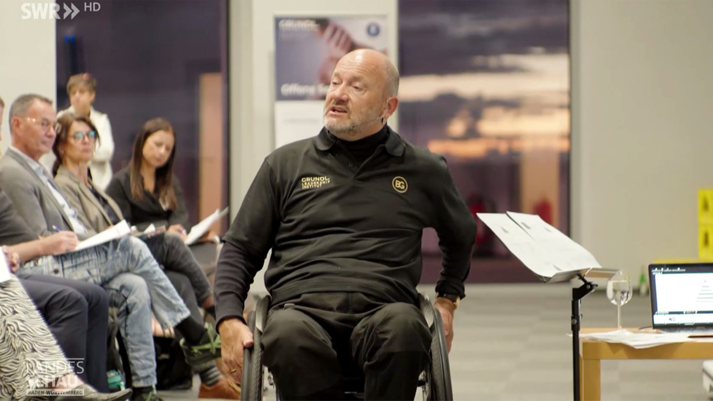 Boris Grundl aus Trossingen sitzt seit 34 Jahren im Rollstuhl. Seit einem missglückten Klippensprung ist er zu 90 Prozent gelähmt. Zunächst noch Sozialhilfeempfänger, zählt er heute zu den erfolgreichsten Führungsexperten und berät Manager sowie Führungskräfte in ganz Europa zu Persönlichkeitsentwicklung und Mitarbeiterführung. In seinem neuesten Werk „Lust auf Verantwortung?“ fordert er dazu auf, Verantwortung als Schlüssel zum Erfolg zu begreifen.