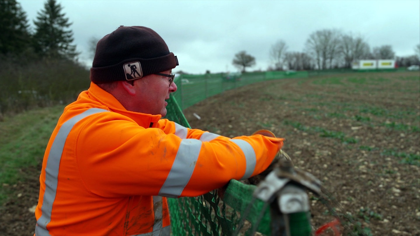 Auf Wolle und sein Team von der Straßenmeisterei Langenau wartet eine lästige Arbeit: Die Schneezäune müssen aufgestellt werden. Schneeverwehungen sind eine Gefahr für Autofahrer. Also packt das Team die Gummistiefel aus und wagt sich mit schwerer Last in den Matsch.