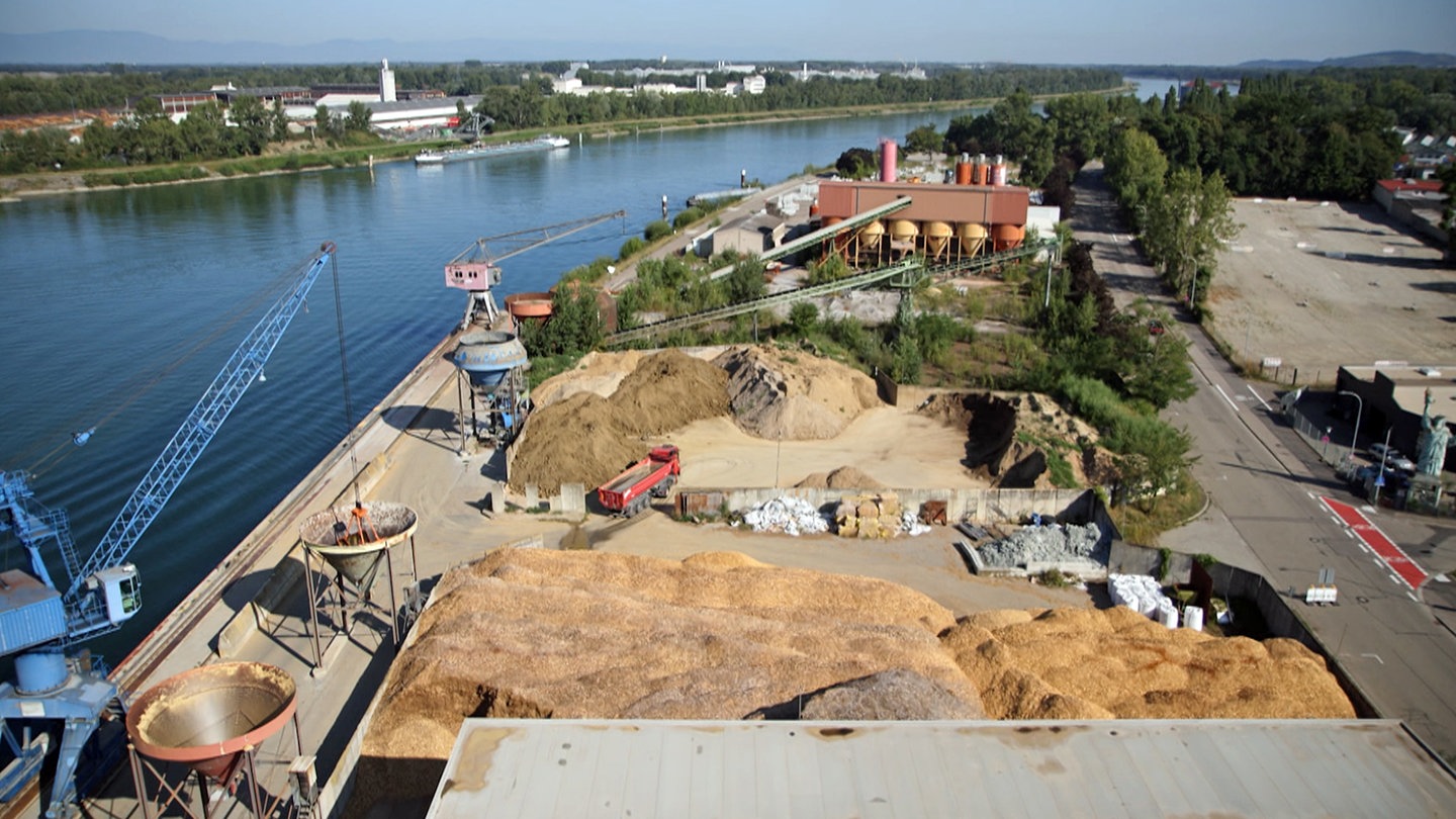 Der Hafen in Breisach könnte kaum idyllischer liegen. Es ist der kleinste Industriehafen weit und breit. Hier am Rhein mit Blick auf die Rheininsel arbeiten noch echte Menschen an den Maschinen.