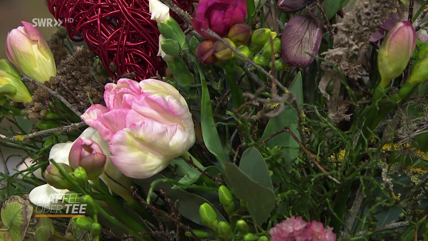 Strauß zum Valentinstag mit Herz aus Aludraht Liste der Share-Möglichkeiten öffnen Teilen Gemerkt Merken Drucken Teilen Liste der Share-Möglichkeiten schließen Link kopieren E-Mail Facebook WhatsApp KurznachrichtendienstX Mastodon Bluesky Threads Stand 14.2.2025, 16:33 Uhr Zum Valentinstag bindet Floristin Jasmin Centner einen schöen Staruß mit Freesien und einem Herz aus Aludraht. Zur Startseite der Sendung Zur Mediathek