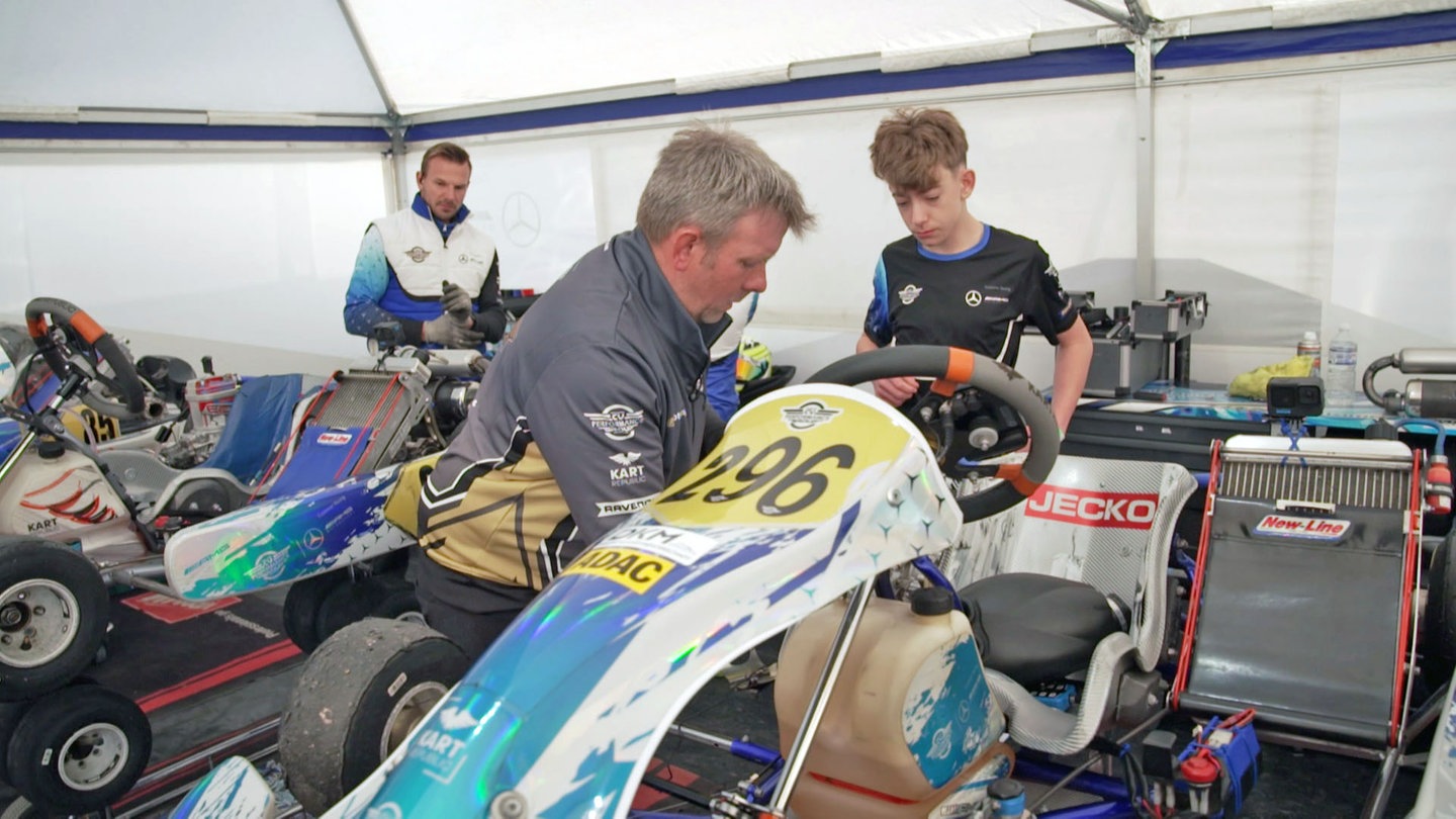 Dabei kann seine Familie kann nur einen kleinen Bruchteil der Kosten aufbringen. Andere Eltern investieren locker 150.000 Euro im Jahr für den Sport. Adrians Vater ist Zimmermann, aber auch der Mechaniker seines Sohns, der mit den Besten mithalten kann. Er hat sogar ein Team gefunden, dass auf ihn aufmerksam wurde.