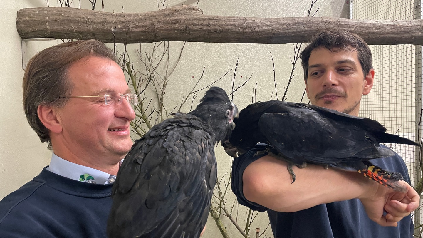 Im Karlsruher Zoo geben gerade Manni und Mathilda den Ton an. Das sind zwei seltene Banks-Rabenkakadu-Küken. Mehr als zwei Monate hat sich der Zoodirektor und Papageienexperte Matthias Reinschmidt intensiv um den Rabenkakadu-Nachwuchs gekümmert. Jetzt aber muss er lernen loszulassen.