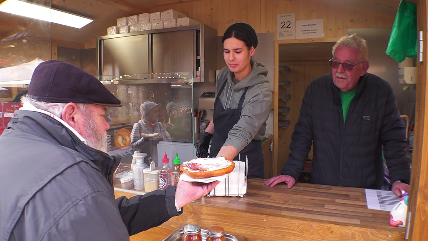 Der Langos vom Michl auf dem Weihnachtsmarkt in Pforzheim ist beliebt. Hier stehen die Leute Schlange - wegen des leckeren Essens und weil der Besitzer immer einen flotten Spruch auf den Lippen hat. In diesem Jahr das erste Mal dabei: sein Sohn Aaron mit Familie und einem Kerzenstand. Gemeinsam machen sie den Weihnachtsmarkt zum Familienunternehmen.