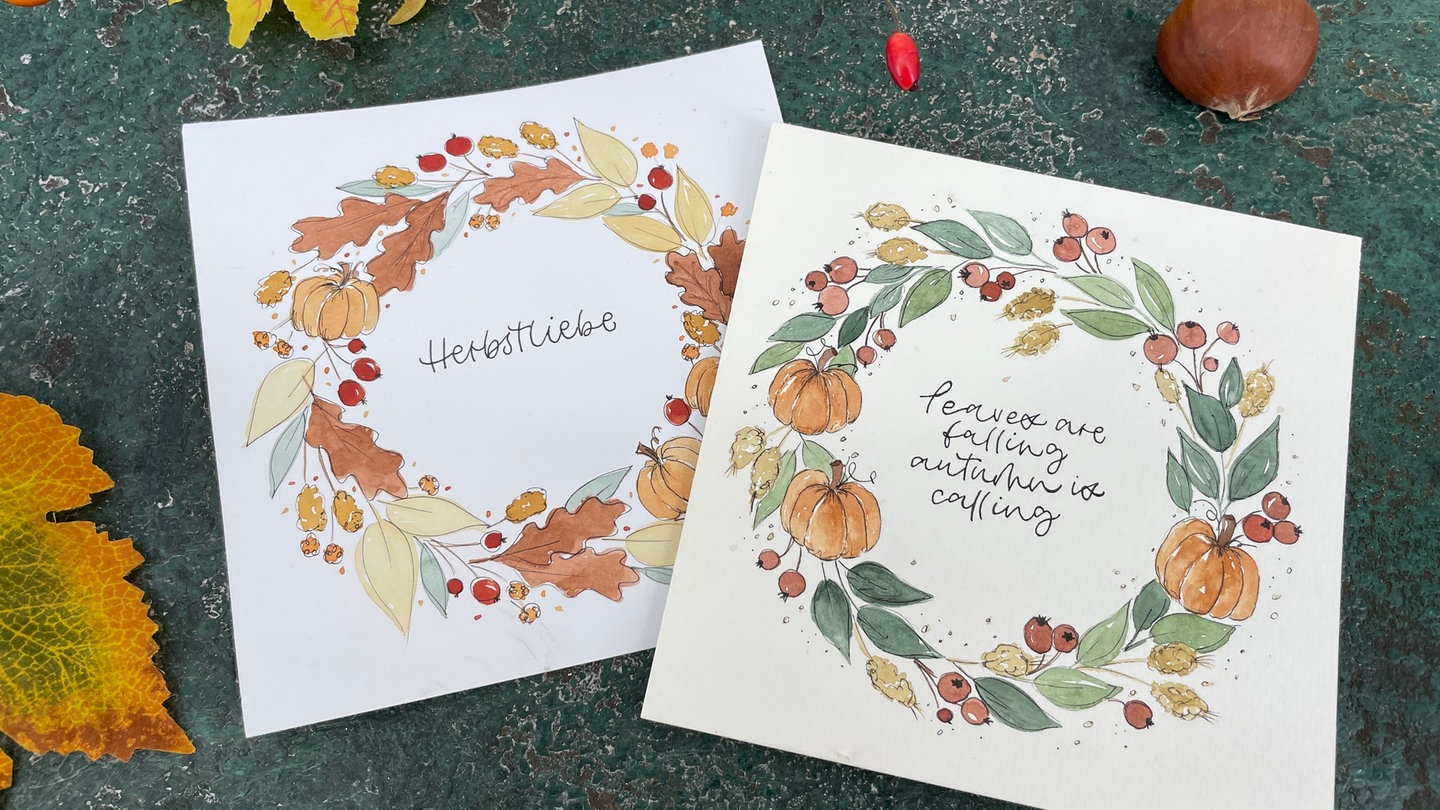 6. Mit einem Feinliner Grußworte aufschreiben. Wenn das Motiv vollständig getrocknet ist, kann mit Fineliner das Motiv noch umrandet werden, das ergibt einen höheren Kontrast.
