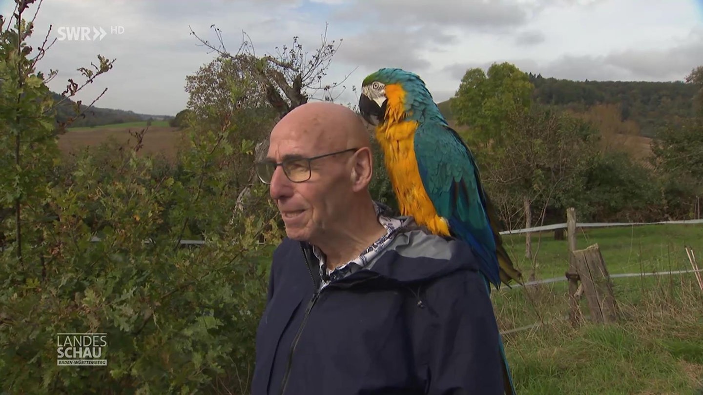 Wenn Hubert Kuhn aus Ochsenbach im Kreis Ludwigsburg mit seinem Haustier Gassi geht, fällt er auf. Denn Richie ist nicht etwa ein Hund, sondern ein Gelbbrust-Ara! Aras sind die Könige der Papageien. Wegen ihrer beeindruckenden Größe und ihrer leuchtenden Farben. Und genau so ein Tier hat sich Hubert Kuhn vor drei Jahren zugelegt. Inzwischen sind die beiden ziemlich beste Freunde.