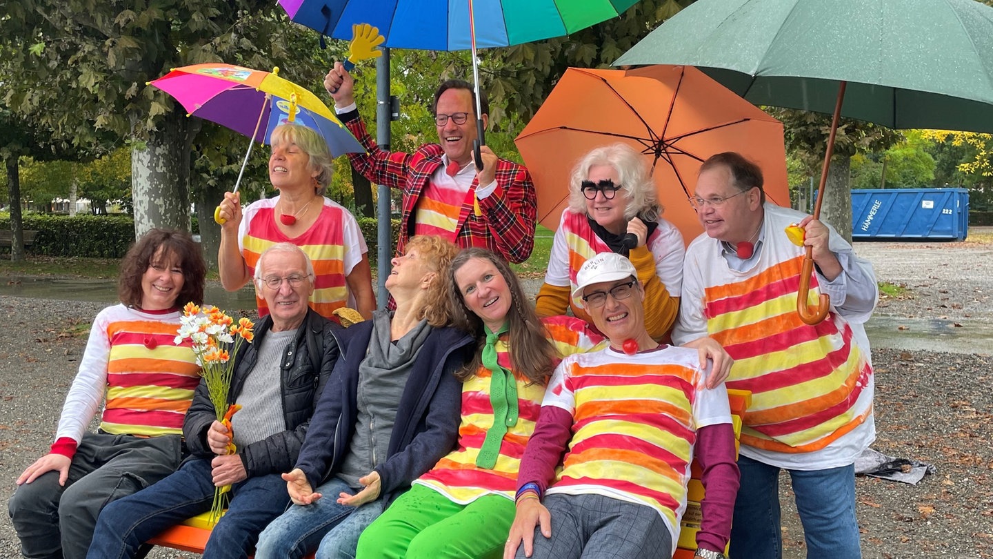 In Konstanz am Bodensee wurde eine bunte Bank aufgestellt, die zum Witze erzählen und Lachen einlädt. Die Idee dazu hatte die Abschlussklasse der Clown Academy. Die Konstanzer finden es gut und testen ihren Humor.