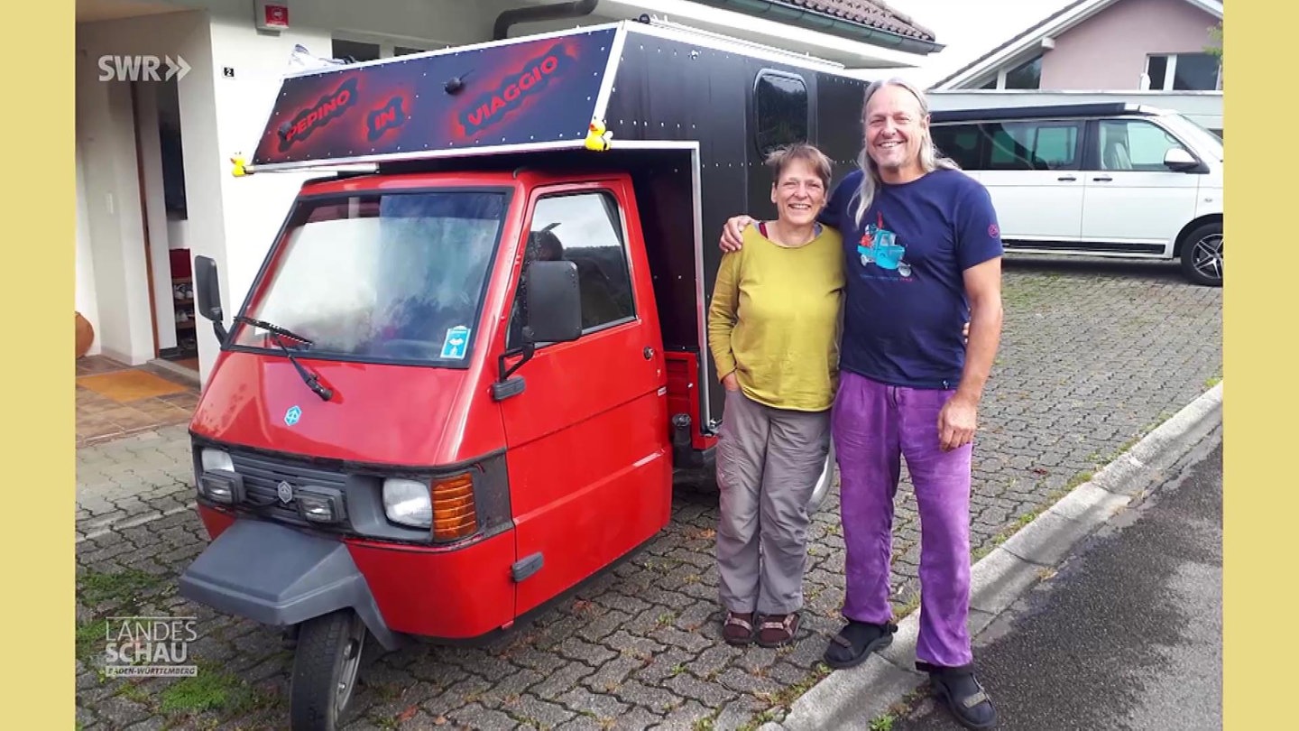 Das Paar aus Grenzach-Wyhlen fährt 2024 mit einer Ape, einem dreirädrigen Rollermobil, nach Sizilien. Insgesamt legen sie 7500 Kilometer zurück und das mit nur 13 PS! Ihre Tour dauert dementsprechend lange: vier Monate brauchen sie für die Strecke. Diese Entschleunigung haben die beiden bewusst gewählt. Nach einem arbeitsintensiven Berufsleben und einem Burnout wollten sie das Reisen einmal völlig entspannt genießen. Dafür haben sie sich die gebrauchte Ape gekauft, in Eigenregie umgebaut und „Pepino“ getauft. Im Interview erzählen Marion und Ralf Hermann über die Vorzüge des langsamen Reisens und auch, wie sie als Paar die permanente Nähe in ihrem Mini-Reisemobil ausgehalten haben.