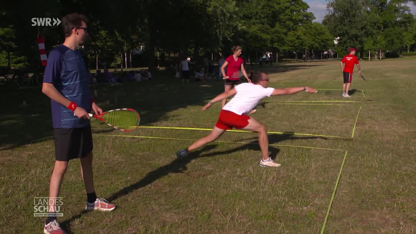 Auf den ersten Blick sieht es aus wie Badminton. Doch es fehlt das Netz. Deshalb kann man Crossminton quasi auf jeder freien Fläche spielen. In Freiburg trifft sich einmal in der Woche eine Gruppe des FT Freiburg im Seepark.