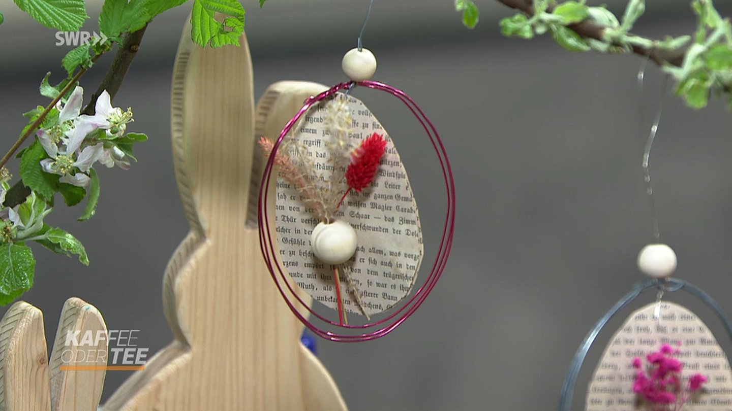 Green-DIY Osterei-Anhänger aus alten Büchern und Trockenblumen