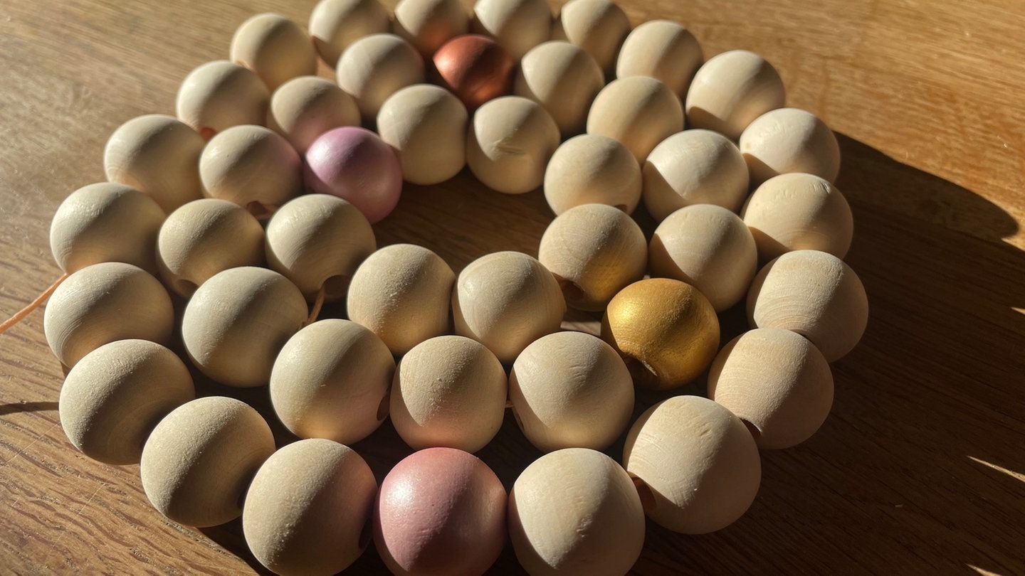 - Holzperlen (Menge und Durchmesser hängt von gewünschter Größe ab)
