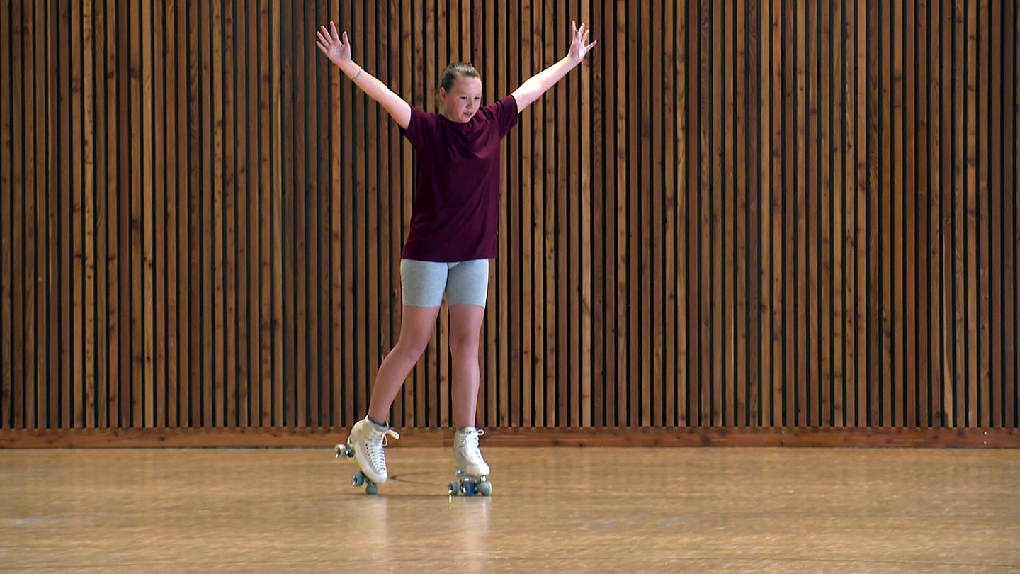 Mit dem Landesschau-Wohnmobil ging es für die Familie Weigand am zweiten Tag der Wohnmobil-Tour nach Lahr. Hier mussten sie beweisen, wer am besten auf Rollschuhen unterwegs ist.