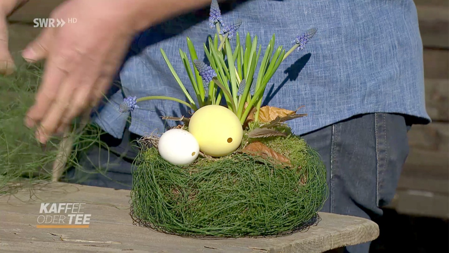 - Zur Dekoration: Eierschalen, Feder, Zweige, Heu