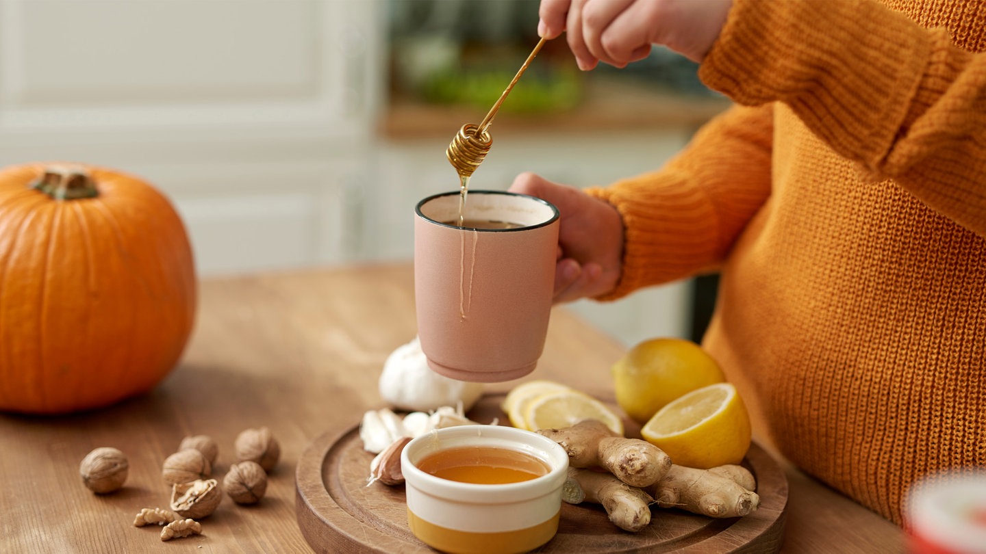 Der Honig, vor allen Dingen der Fenchelhonig oder der Spitzwegerich-Sirup sorgen direkt dafür, dass die Schleimhaut im Hals wieder ein bisschen gepflegt wird. Die bekommt ein bisschen mehr Geschmeidigkeit und dadurch kann man den Schleim schlucken und dann durch den Darm entsorgen.