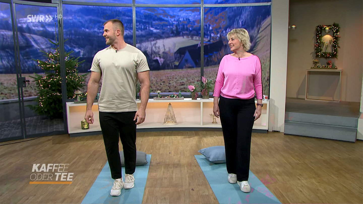 So geht die Übung: Wir ziehen die Schuhe aus und stellen uns schulterbreit auf. Wir gehen nun zuerst auf die Zehenspitzen, rollen dann harmonisch ab und landen abschließend auf den Fersen. Um die Wahrnehmung noch mehr zu trainieren, können wir mal den rechten und mal den linken Fuß mehr belasten.