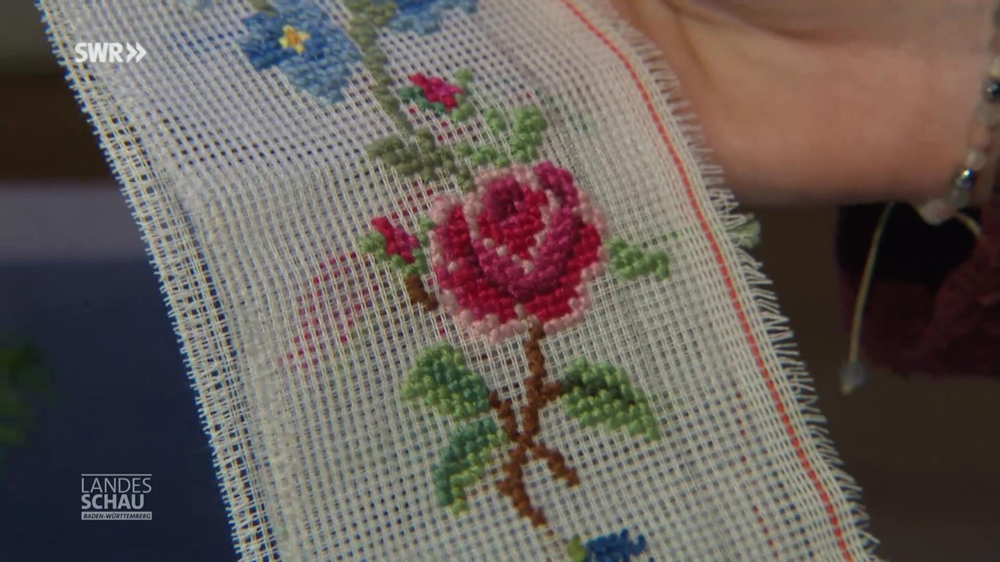 Clara Strecker aus dem Glottertal bei Freiburg bestickt in vierter Generation Hosenträger für die Musiker der Trachtenkapelle. Die wertvollen Hosenträger werden dort individuell auf Wunsch angefertigt und werden sogar an die Kinder weitervererbt.