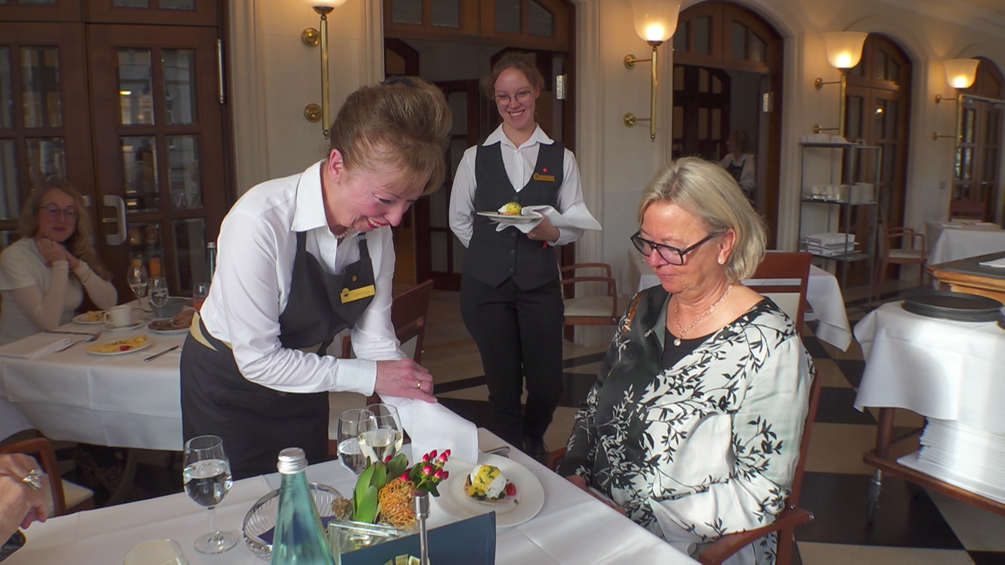 Gabriele Gass betrieb mit ihrem Mann Hans mehr als 50 Jahre die Zoo-Terrassen im Karlsruher Zoo. Vor zwei Jahren hörte das Paar auf. Gabriele fühlt sich mit Anfang 70 noch zu jung, um auf der faulen Haut zu liegen und hält deshalb die jungen Kolleginnen in einem Baden-Badener 5 Sterne Hotel auf Trab.