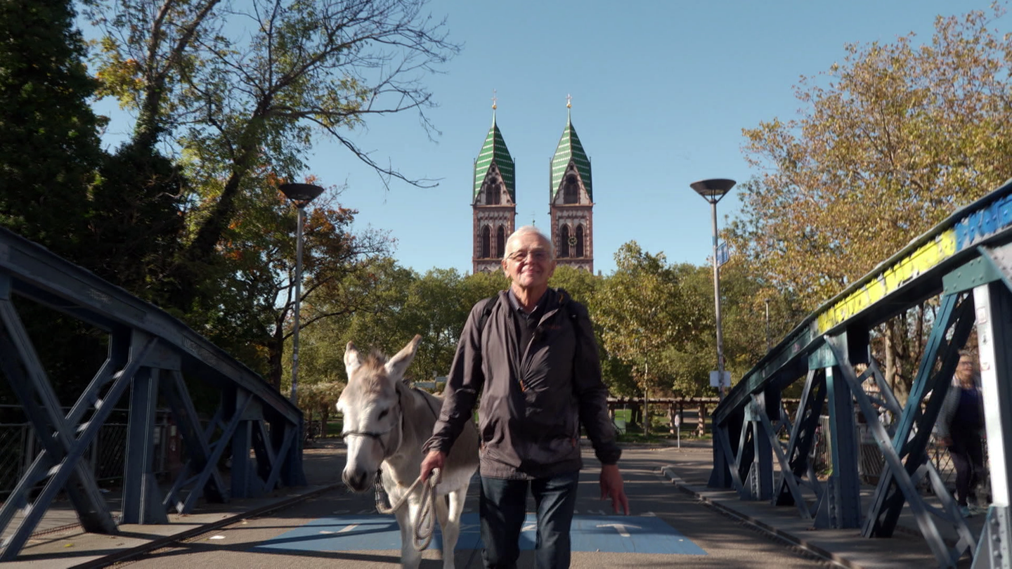Esel sind treue und intelligente Artgenossen. Das kann auch Ernst König bestätigen. Sein bester Kumpel ist Esel Charly, mit dem er regelmäßig Ausflüge nach Freiburg macht.