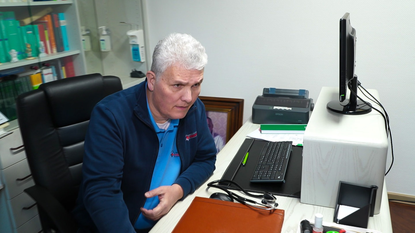Dr. Klaus Fischer führt seine Arztpraxis in Ransbach-Baumbach in vierter Generation. Aus der früheren Landarztpraxis ist heute ein moderner Betrieb geworden: Drei Ärzte, medizinische Fachangestellte, digitale Abläufe. Trotzdem ist der Umgang familiär.