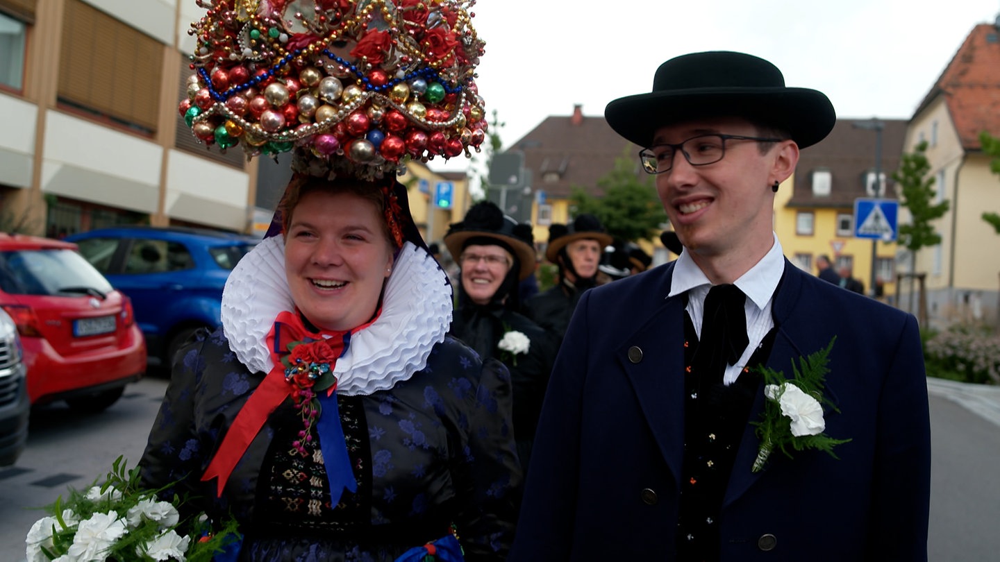 Der traditionelle Hochzeitszug gehört zur Heugaus in St. Georgen einfach dazu. Dieses Jahr steht mit Sandra Schreiber und Moritz Volk sogar ein echtes Brautpaar an seiner Spitze. Geheiratet wird traditionell in Tracht, mit alten Hochzeitstänzen, Aussteuer und Pferdewagen.