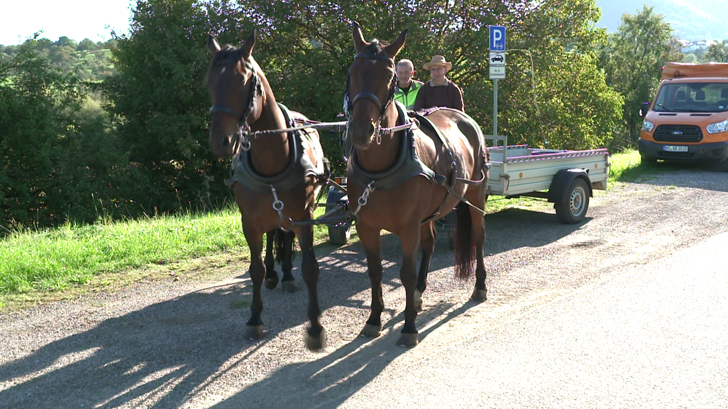 Die Gemeinde Beuren sammelt den Müll aus den öffentlichen Mülleimern normalerweise mit dem Dieselfahrzeug ein. Das ist jedoch nicht klimafreundlich. Deshalb haben sie testweise ein Pferde-Gespann als Müllabfuhr engagiert. Ist es möglich damit in der gleichen Zeit die Tour abzufahren?