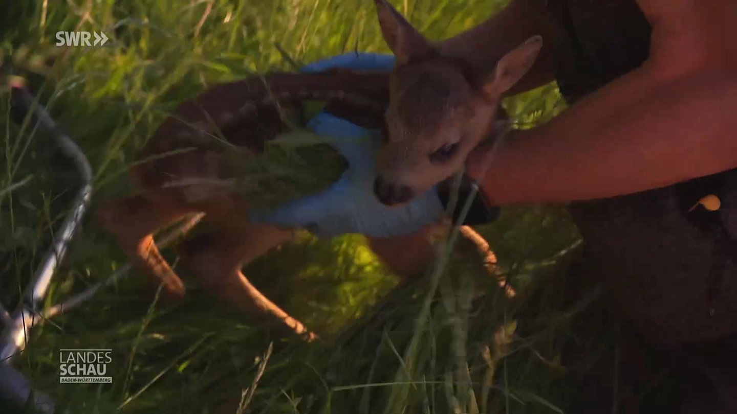 Jedes Frühjahr sterben in Deutschland 100.000 Rehkitze bei der Wiesenmahd. Andrea Merz und Bernhard Wichmann retten ehrenamtlich Rehkitze mithilfe von Drohnen und Wärmebildkameras. Bevor die Wiesen in Heuweiler bei Freiburg gemährt werden, versichern sie sich, dass sich kein Rehkitz im Gras versteckt.