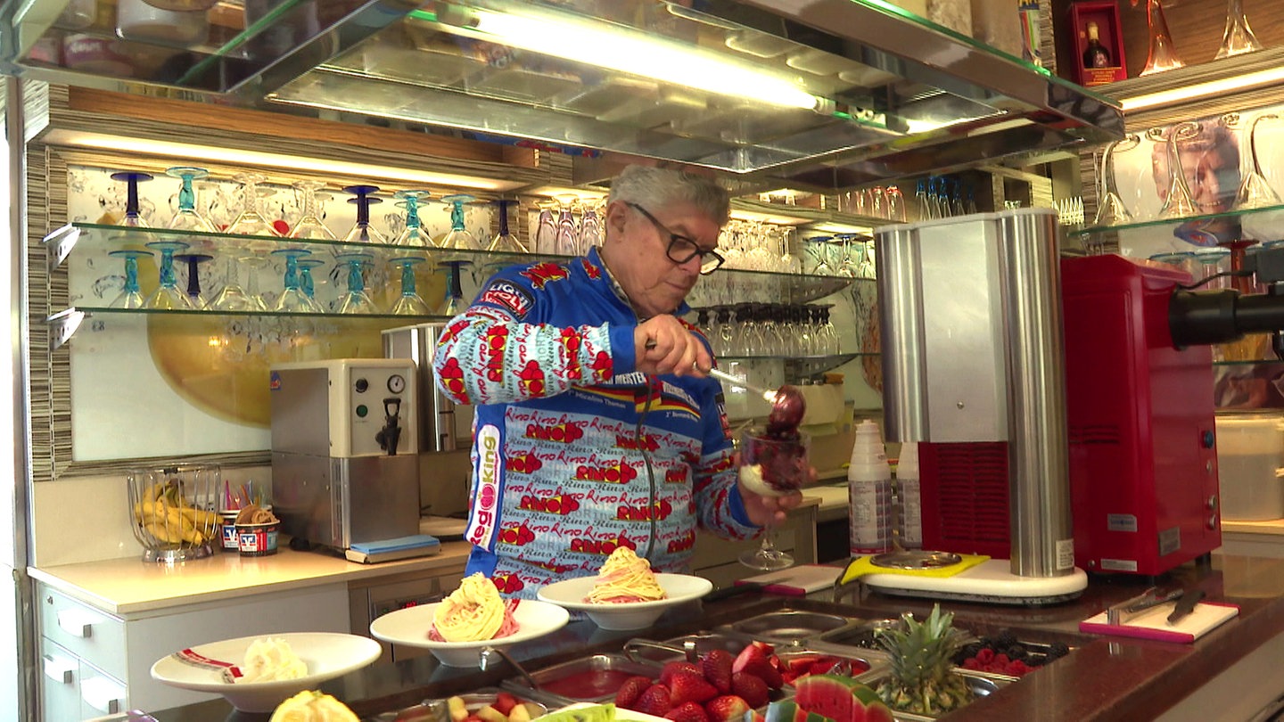 Rino Bernardi bietet in seiner Eisdiele in Ochsenhausen neben den Klassikern Schokolade, Erdbeere oder Vanille auch ausgefallene Sorten an. Mit einem Granatapfel-Honig-Eis tritt der Eismacher bei der Eis-Weltmeisterschaft in Las Vegas an und will den Titel holen.