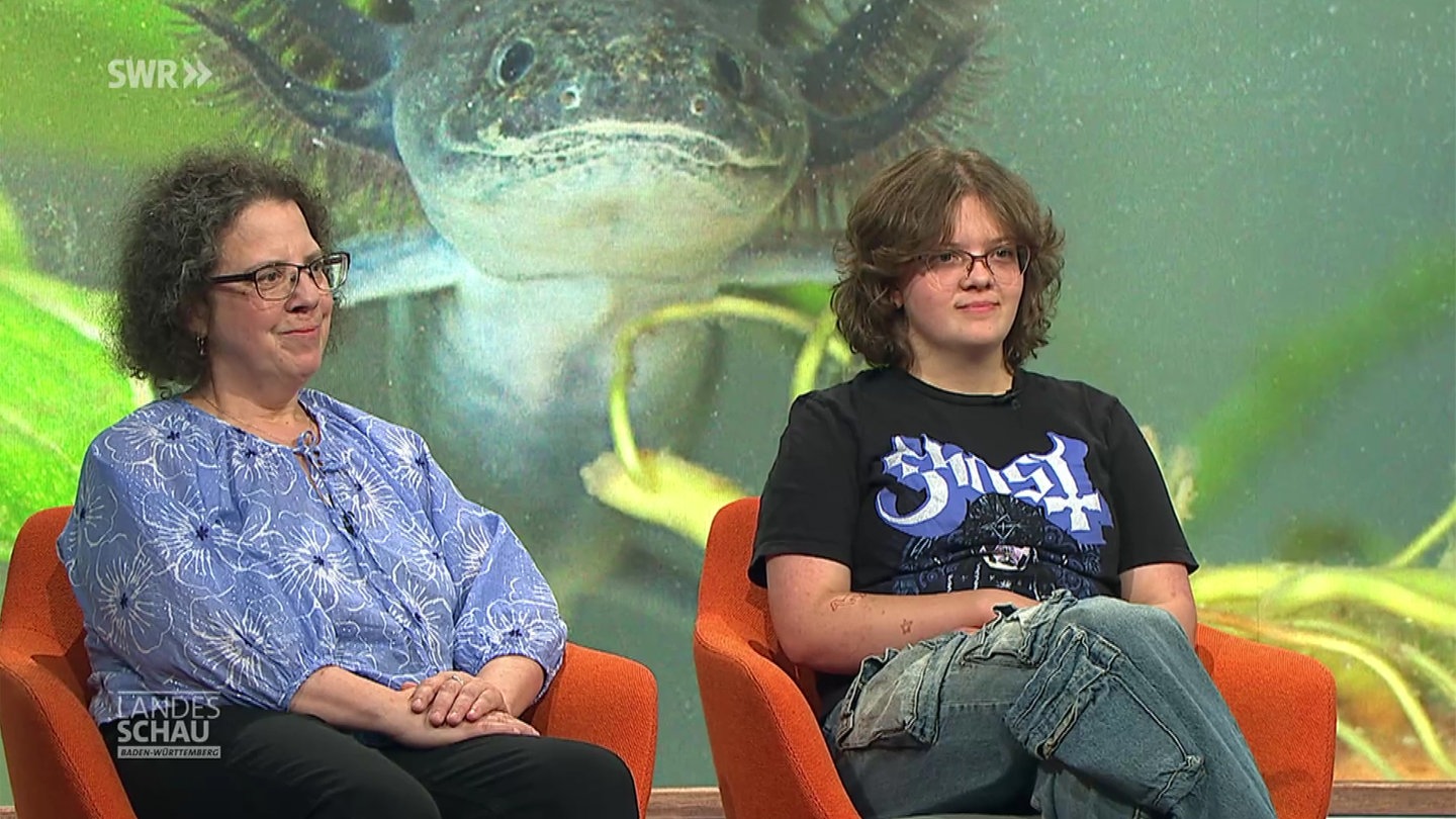 Sina und Hjordis Jans teilen ein außergewöhnliches Hobby: In ihren Aquarien schwimmen über 40 Axolotl – Wassersalamander, die nie erwachsen werden. Angefangen hat alles mit zwei Tieren, doch aus Männchen und Weibchen wurde schnell eine ganze Familie. Im Landesschau-Studio erzählen die beiden, was sie an den kleinen „Wasserdrachen“ so fasziniert, wie sie mit dem Nachwuchs umgehen und warum die Tiere inzwischen zum festen Teil ihres Alltags gehören.