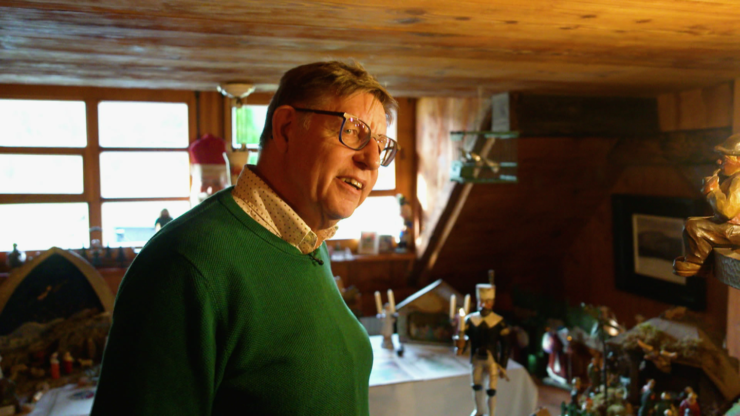 Jochen Zucker sammelt Krippen und Weihnachtsschmuck in seinem über 400 Jahre alten Bauernhaus. Dort wohnt er mit seiner Frau Barbara, die er mit seiner Leidenschaft angesteckt hat.
