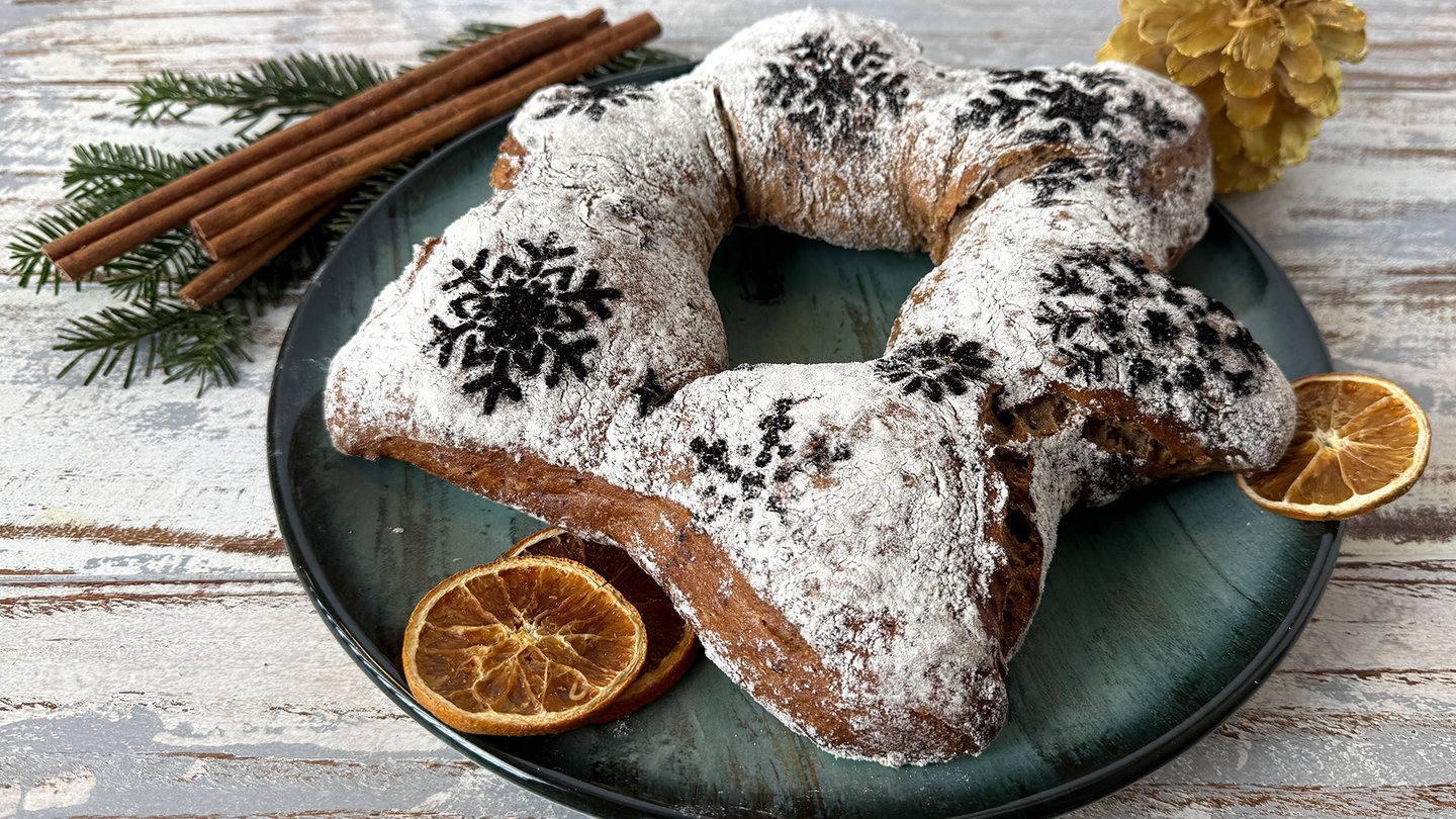 6. Den Backofen auf 240 Grad Ober- und Unterhitze kurz vorheizen. Zwei Backbleche mit Backpapier belegen. Die Teigportionen anschließend rund formen und etwas plattdrücken. Mit einer Teigkarte (am besten aus Metall oder eine feste Karte aus Kunststoff) den Teig in der Mitte dreimal einstechen (kreuzweise, wie bei einer Torte) und dann die Spitzen nach außen umklappen, sodass eine Sternform entsteht.