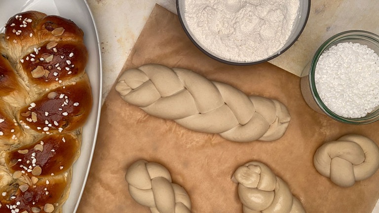 Hefezöpfe mit unterschiedlichem Muster flechten? Geht eigentlich ganz einfach, wenn man es mal gesehen hat. Hannes Weber zeigt uns ein paar Flechtvarianten für den beliebten Hefezopf.