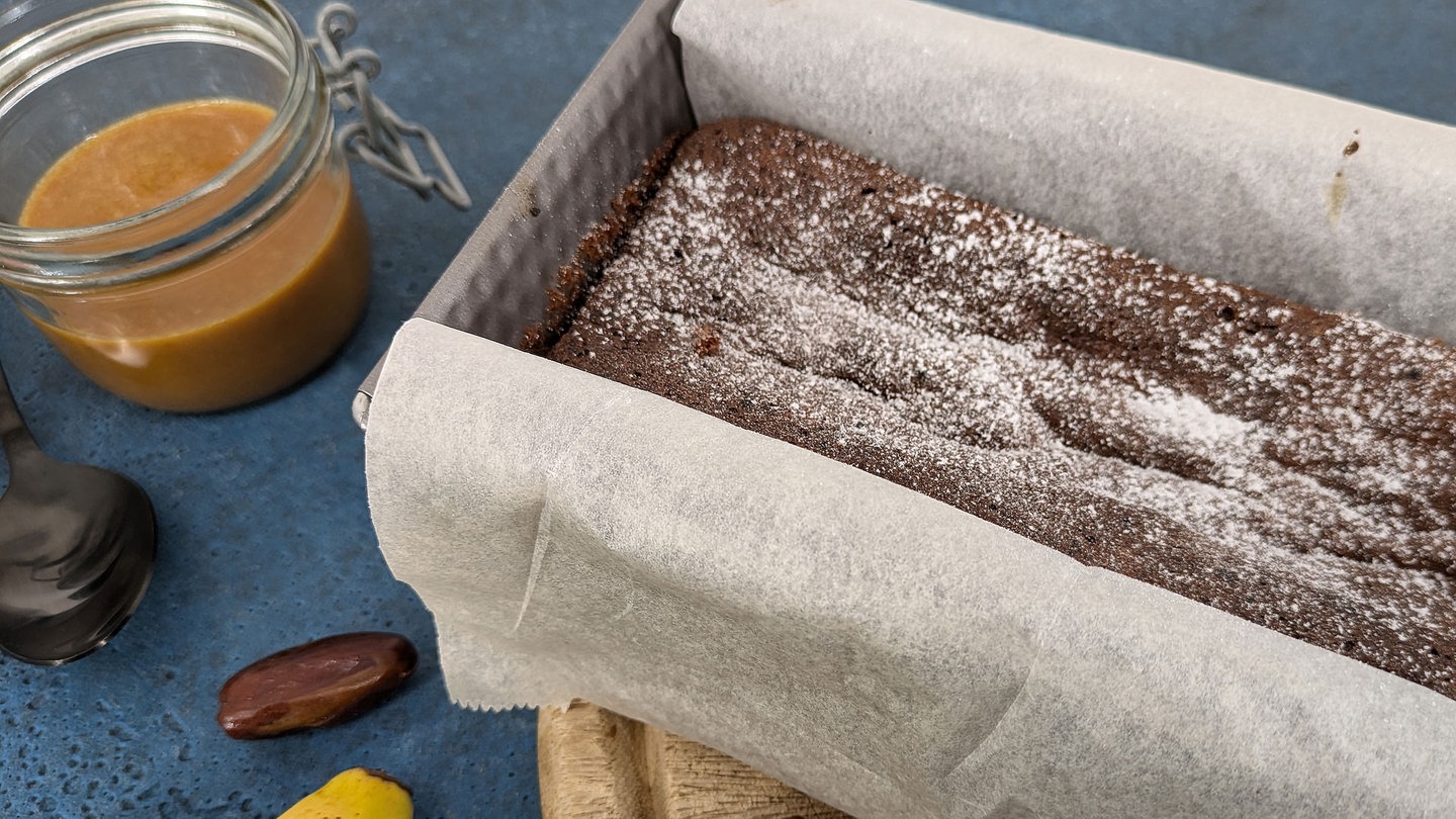 6. Eine Kastenkuchenform (ca. 30 cm lang) mit Backpapier auslegen und den Teig einfüllen.