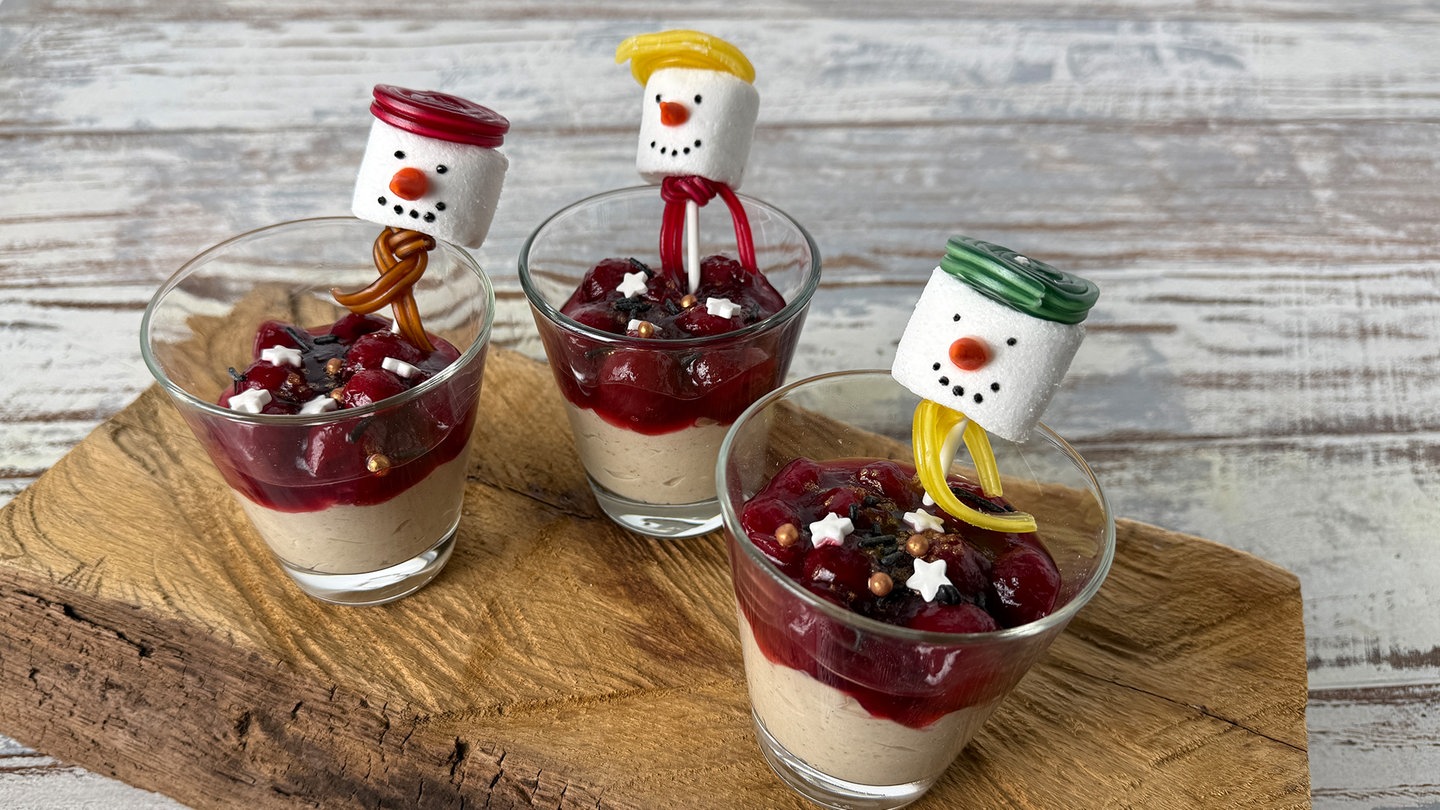 14. Zum Servieren das Kirschkompott auf die Maronencreme verteilen.