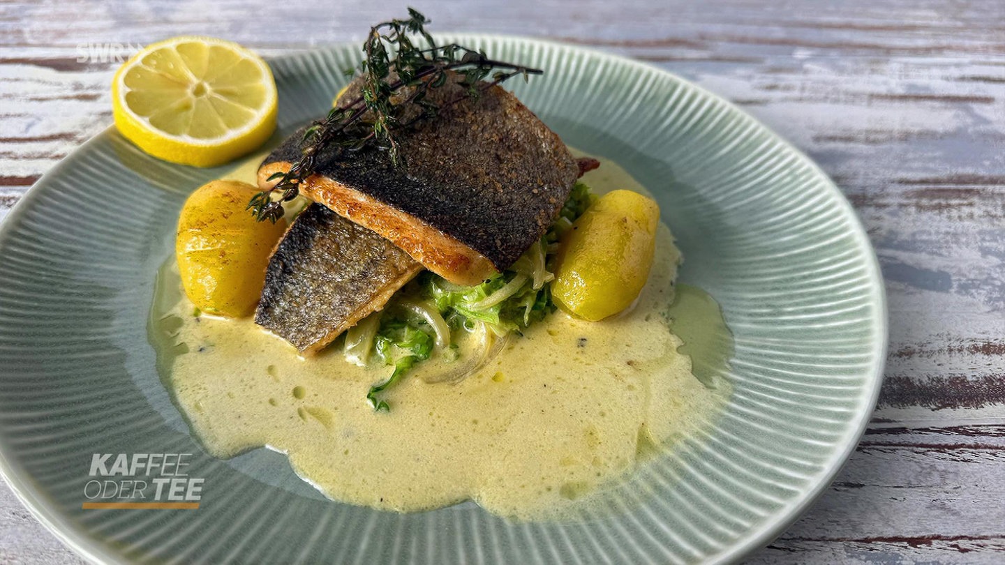 9. Wirsing und Fischfilets anrichten und servieren. Dazu passen Petersilien-, Bratkartoffeln oder Kartoffelpüree.